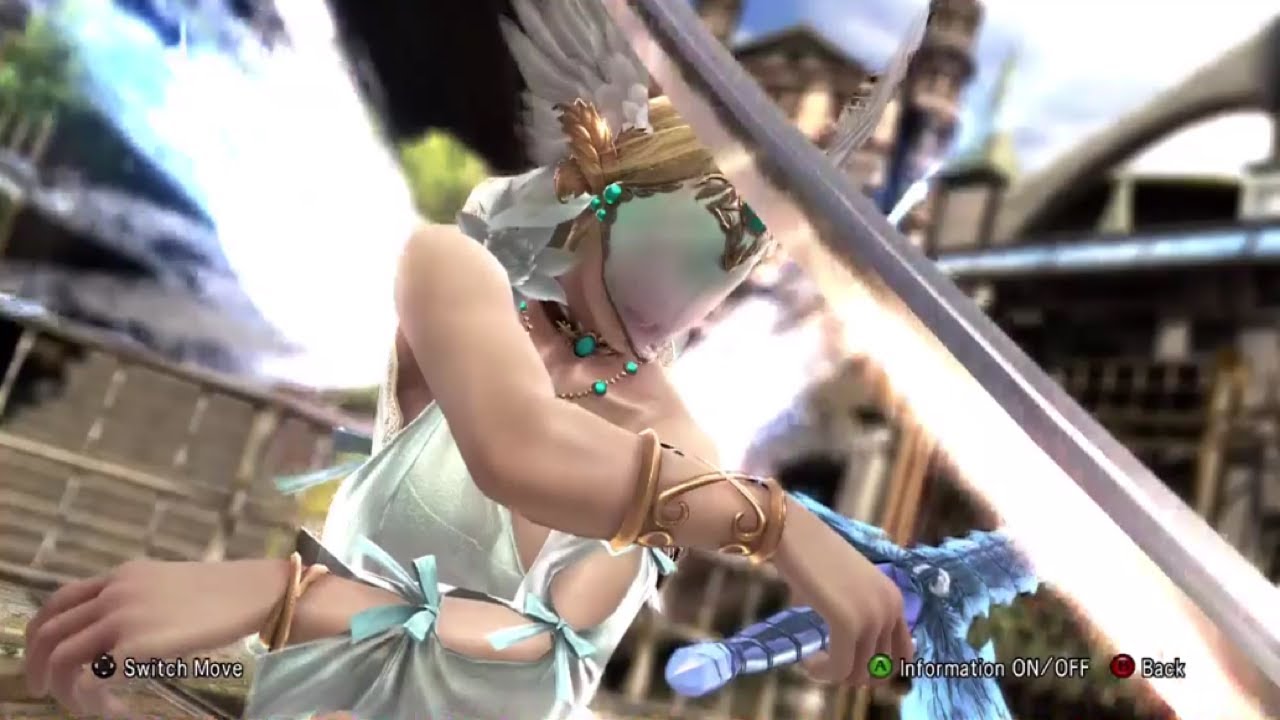 Lo que sí que comentaría es que haría que mantuviera su apariencia alada de los artes para diferenciarlo más estéticamente de Sophitia (y quizá hacer que flotara todo el rato, para que sus animaciones al quedarse quieto fueran también diferentes). Además, algunos de sus ataques exclusivos podrían sacar provecho de ello para que el personaje fuera más llamativo, tal y como hacen con Inferno.